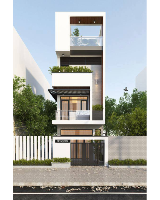 Mẫu nhà phố đẹp 5 tầng có gara ô tô.