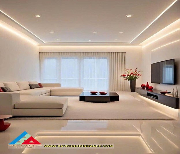 Phòng khách: Được bố trí ngay cửa chính, sử dụng nội thất tối giản, ưu tiên ánh sáng tự nhiên để tạo cảm giác rộng rãi.